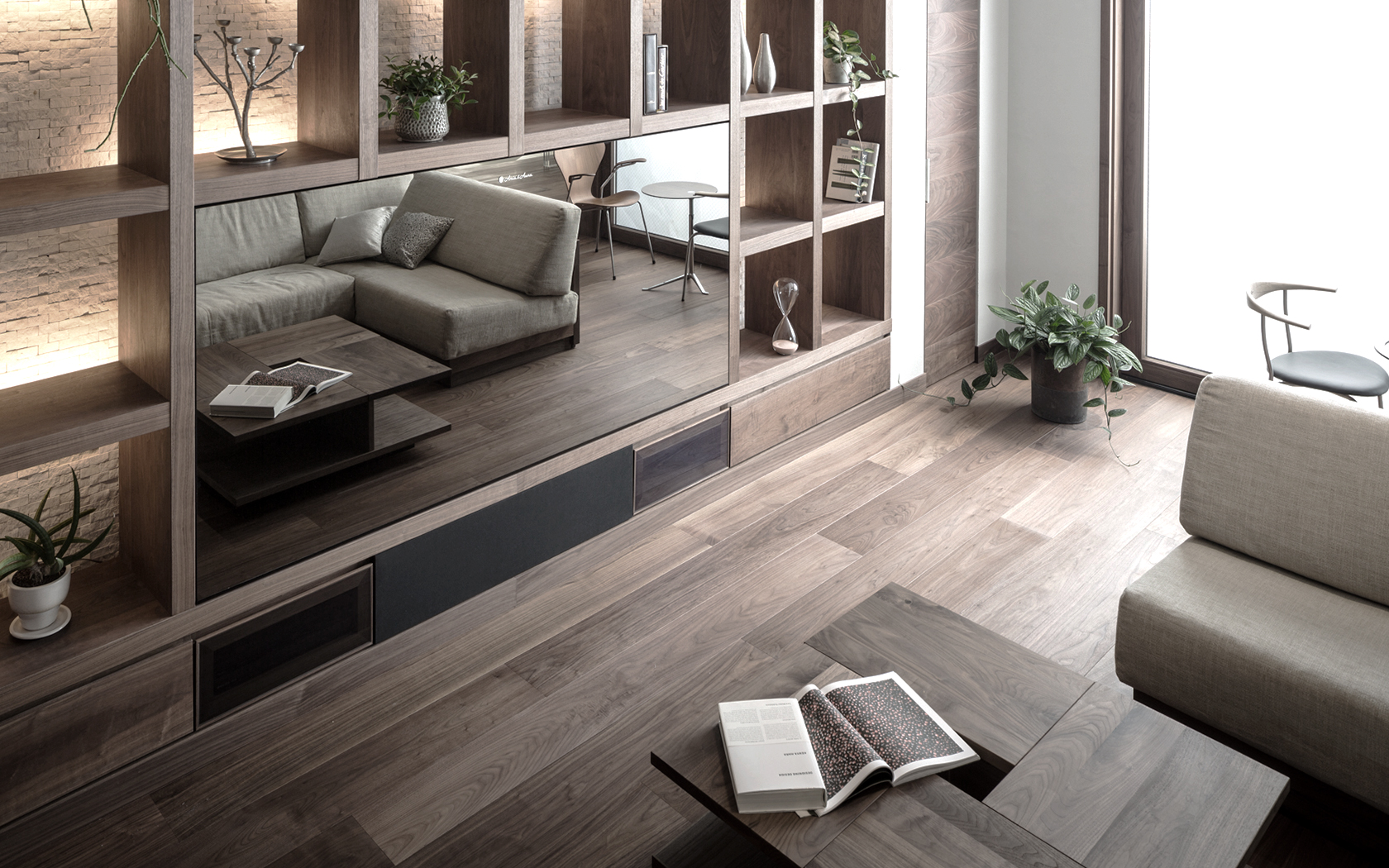 Living room where excellent materials resonate with each other