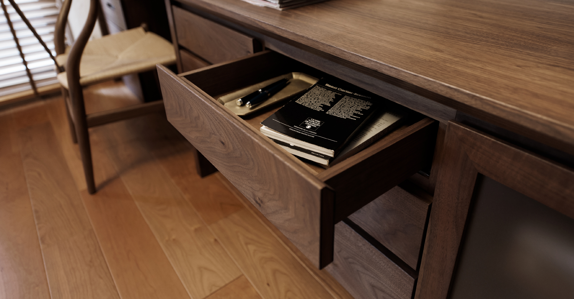 高貴さをたたえた色合いと重厚感あふれる杢目が、極上の質感をもたらします。