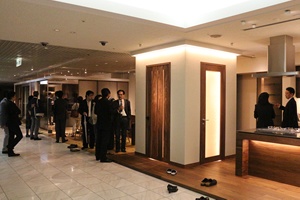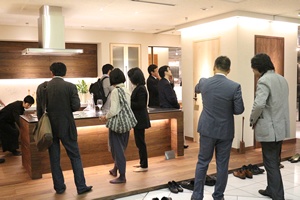新聞や雑誌など、さまざまな媒体に取り上げていただいたAria&Auraのプロダクトを実際に見て触れて体験できる、全国唯一のショールームということで、インテリア・住宅関連企業さま、建築事務所さま、マスコミ各社さまなど、Aria&Auraブランドへご期待を寄せていただいている多数の方々にご出席いただきました。