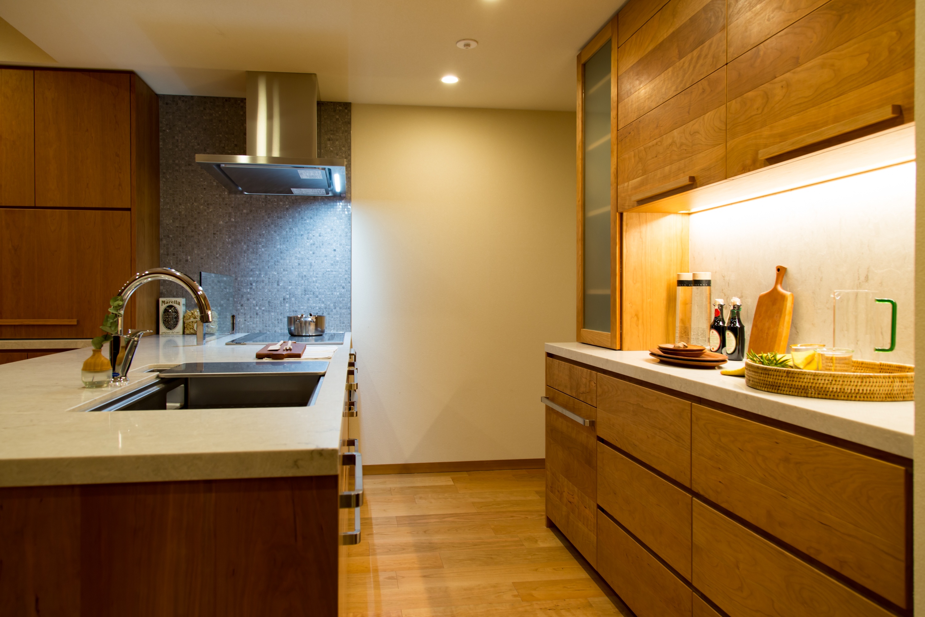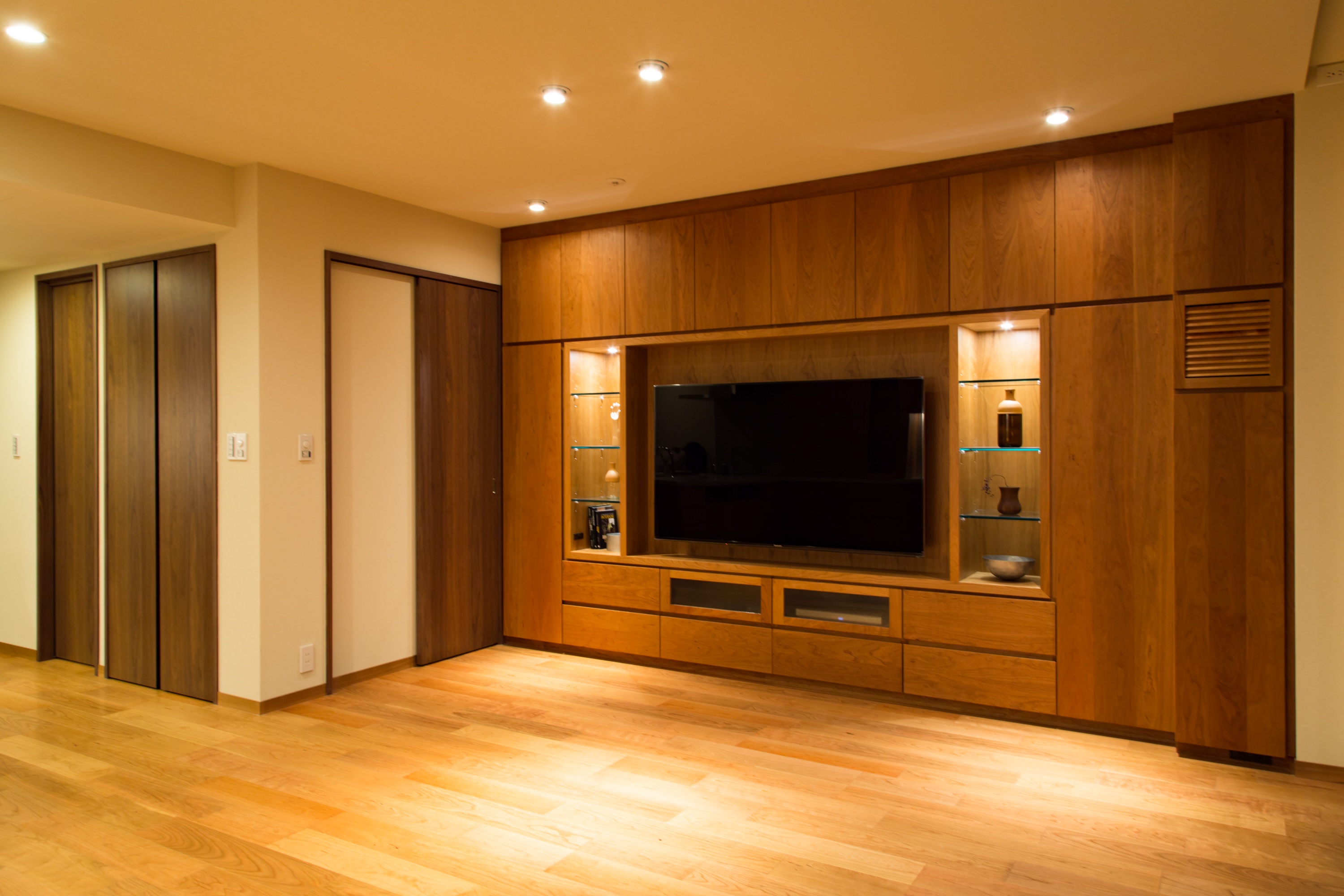 Top News&Topics ギャラリーに施工例を追加しました 2017.06.05 ギャラリーに施工例を追加しました ブラックチェリー挽き板をふんだん使った暖かみのある空間。 キッチンからダイニング収納に繋がりを持たせることで、空間が広く見え、また対面のテレビボードとの統一感が生まれました。 キッチンカウンター素材はクォーツストーン フルオーダー対応のテレビボード ツイート